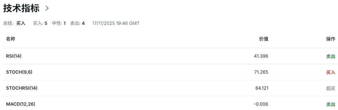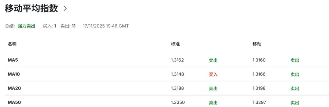 尽管从日线结构来看,英镑在11月5日下探1.3000区域后出现一定反弹,但从周线结构来看,汇价仍处于了了的下降趋势中,且未能灵验突破1.3250水平。这标明自本年4月所形成的双顶回转形态已经灵验。若后续反弹无法站稳1.3250阻力区,现时回升仅可视为对前期超卖现象的期间性建筑,合座下行趋势并未改变。现在下方短期复旧位于1.3090,若该位置失守,汇价可能进一步下探1.2940,该水平为年内低点1.2098至高点1.3787的50%斐波那契回撤位,具备渊博期间真谛。